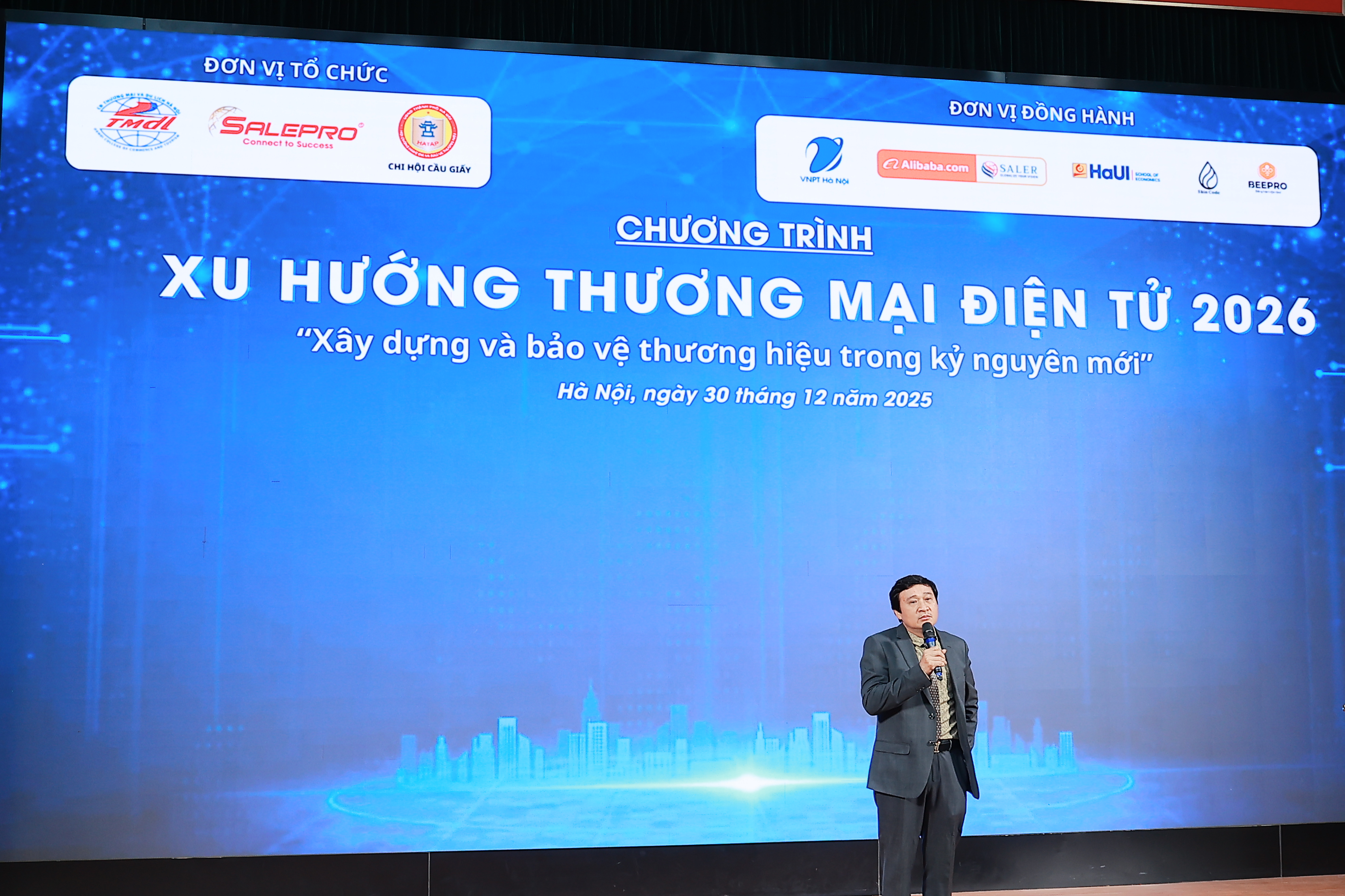 Sáng ngày 30/12 tại Hà Nội, Hệ sinh thái Salepro, Chi hội chống hàng giả Cầu Giấy, Trường CĐ Thương mại và du lịch Hà Nội cùng các đơn vị tổ chức Chương trình “Xu hướng thương mại điện tử năm 2026 – Xây dựng và bảo vệ thương hiệu trong kỷ nguyên mới”. Chương trình thu hút sự tham gia của các chuyên gia, nhà quản lý, đại diện gần 200 doanh nghiệp hoạt động trong lĩnh vực thương mại điện tử, marketing số.
